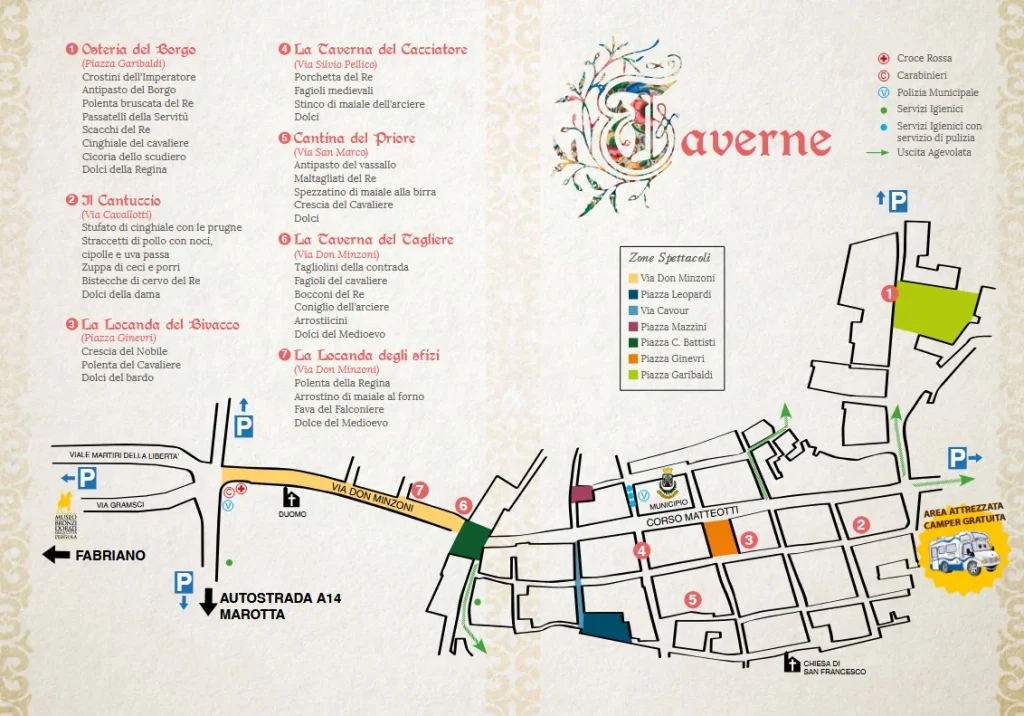 Alle 19 l’apertura delle taverne medievali, quindi, per tutta la serata le vie e le piazze del meraviglioso centro storico si animeranno di spettacoli itineranti, di arcieri, falconeria, sbandieratori, teatrali.