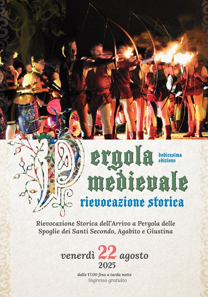 ‘Pergola Medievale’ è uno degli eventi clou del ricco calendario estivo ideato dall’amministrazione comunale. E’ in programma venerdì 22 agosto.